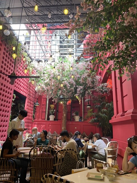 今回宿泊したホテルからも歩いて行けて、ランチで利用しました。赤を基調とした店内に造花とは思えない綺麗なピンクと白のお花がいっぱいのオシャレなレストラン。人気のお店でほぼ満席でしたが、店内は結構広くて奥...