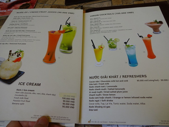 メニューは、ベトナム語と英語表記ですが、写真がついているので