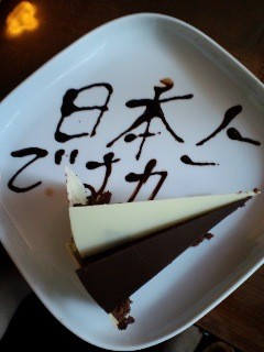 「日本人ですか」と、お皿にチョコクリームで文字が書かれていました。