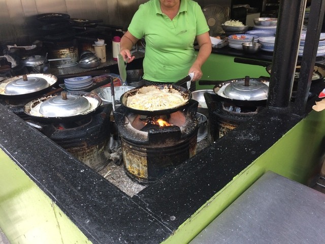 お店の代名詞であるバインセオは店頭の調理場でお店のおばさんが大きなフライパンを使い、炭火で焼いています。