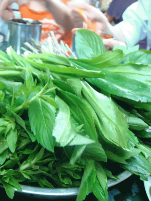 肝心のバインセオは鉄のフライパンを七輪のようなものの上に置いて焼かれるので