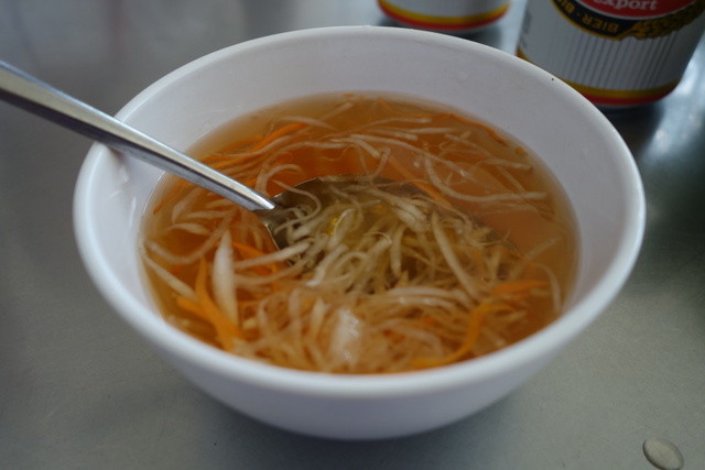 やはり山盛りの野菜が添えられており、お隣のベトナムの方の食べ方を真似て食べました。