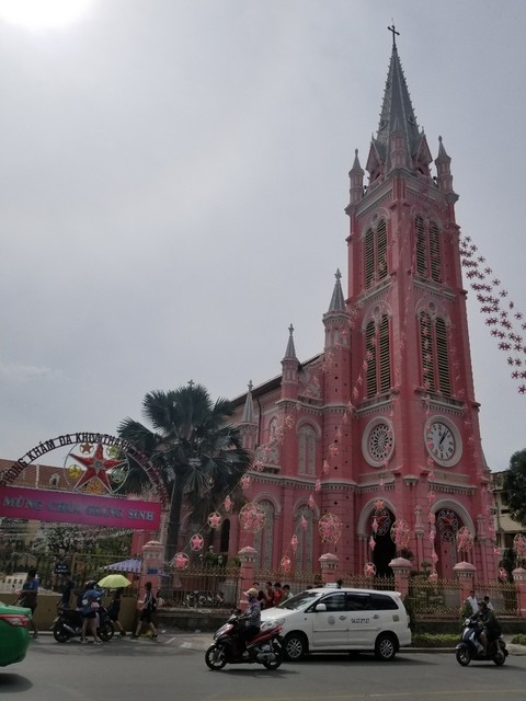近くには可愛いピンクの教会「タンディン教会」があります。