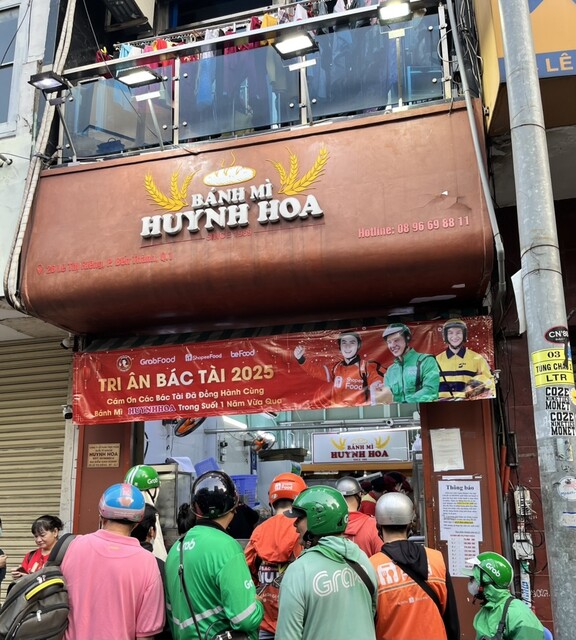 目指したのは駅から歩いて5、6分のバインミーの名店。驚いたのはこんな早朝から店先に群がる無数のバイク配達員たち。次々と袋を受け取っては去っていく。その混沌とした流れ、どこへ並び、どうやって手に入れるのか、まるで見当もつかなかった