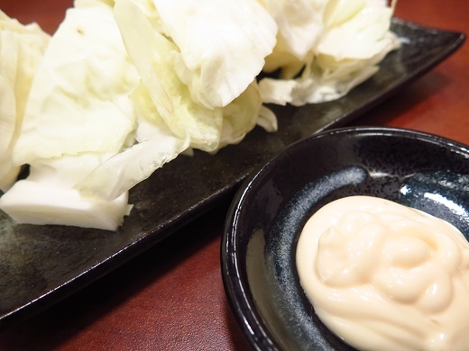 まず お通しのキャベツをアテにビールではじめます。