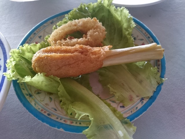 名物の魚のようで、1匹まるっとサクッと揚がってオブジェのように登場!