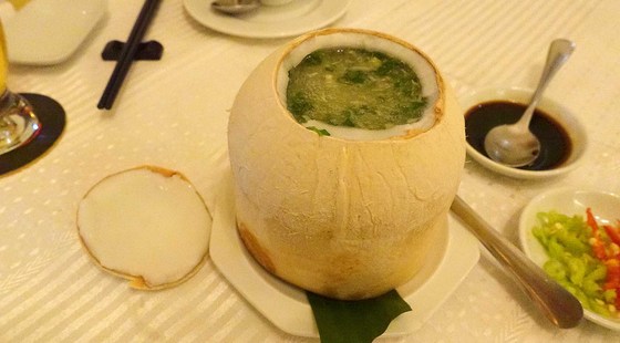 器の実の内側のココナッツも柔らかく煮込まれていますので、スプーンでほじくって戴きます!