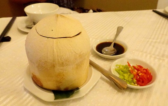 ココナッツ風味のシーフードスープ。中のココナッツは柔らかくなるまで煮込んでおり、スープは軽い味と濃厚なジュースで美味しいです