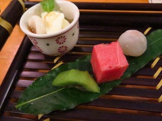 豆腐白玉バニラアイス添え 季節の果物