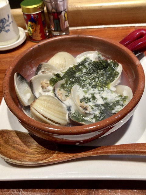 期待したアオサと蛤の料理は、材料も味もイマイチ。