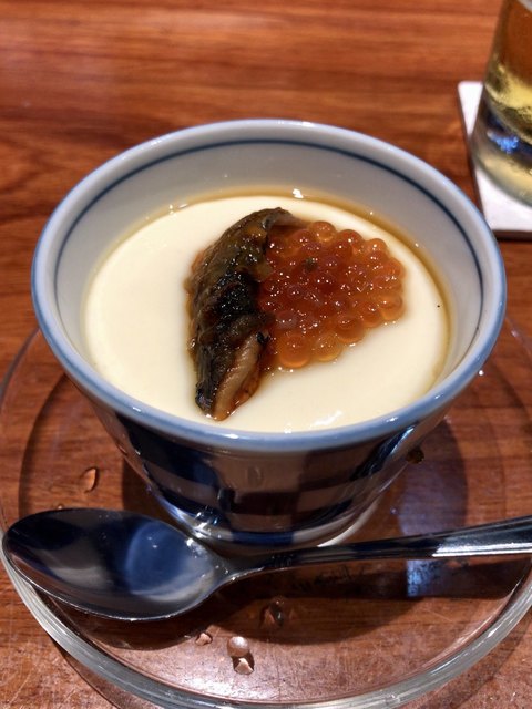 “茶碗蒸し”これはいくらとうなぎが乗っていて、中にも魚介が沢山入っていて美味しい。