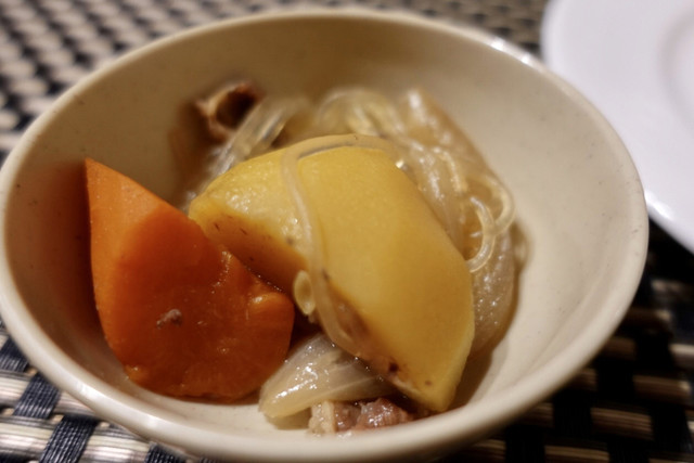 鯖の味噌煮は軽く炊いたレンコンも入っている。鯖は良く煮込まれていて身も柔らかで美味しい。これはご飯が欲しい(笑