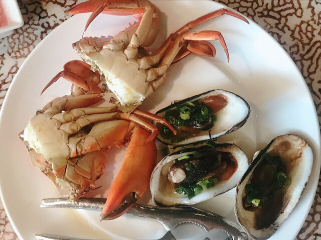 どれも新鮮♪生のシーフードをバターソースで炒めてもらったり、蟹や貝を焼いてもらったり、、、ハマグリをレモングラスで煮て貰ったり。←これ美味しかった!!蟹を揚げてもらってバリバリ食べたりしてました。フィンガーボウル様様です。チリ炒めも作ってもらった。