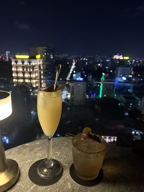 ホーチミンの5つ星ホテル、デザールサイゴンMギャラリーのルーフトップバーで、プールもあります。宿泊客なのか、欧米人ばかりでした。欧米人の子供達がプールで泳いでいて、可愛かったです。