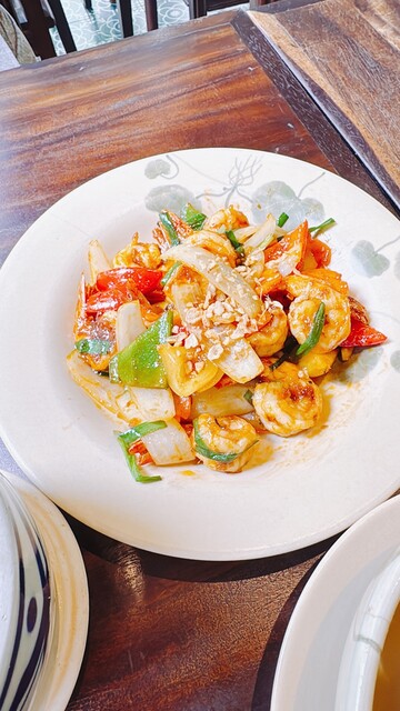 チャーハンとスープと海老の炒め物を注文...