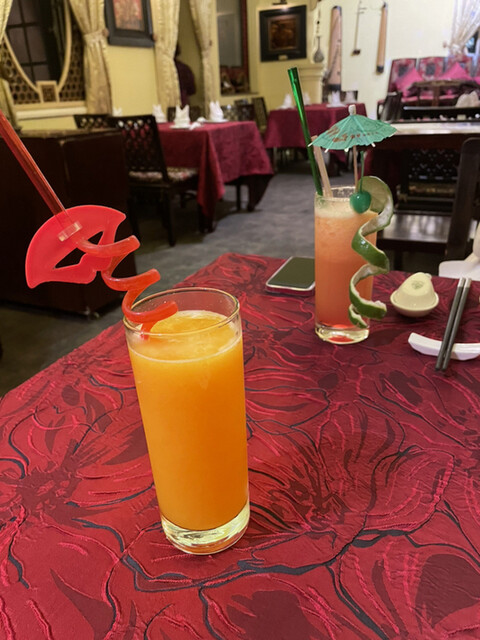 オレンジジュース、生春巻き、ポメロサラダ、魚のグリル、揚げ春巻きいただきました。