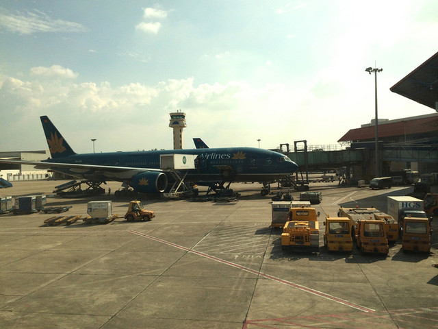 ハノイの玄関口「ノイバイ国際空港」は、今年12月(予定!)に新しい国際空港がすぐ近くに完成予定(!)とのことで現在、工事中だ。この新空港の工事は日本の「大成建設」が受注しているらしく、大きな看板がかかっていた。
