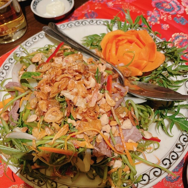 生春巻きは、日本のお店や自分で作ったものより、皮が固めな印象。よく綺麗に巻けるな。