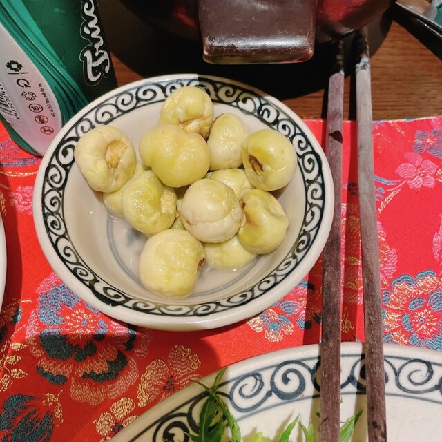 ヌックマムは、ナンプラーとか魚醤で作った角煮。ご飯に乗せて食べたり、ご飯にスープをかけて食べるとのこと。付け合わせで白い茄子の漬物。ご飯、スープ、漬物は、大体セットみたい。