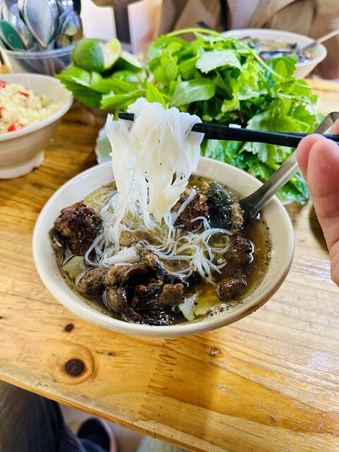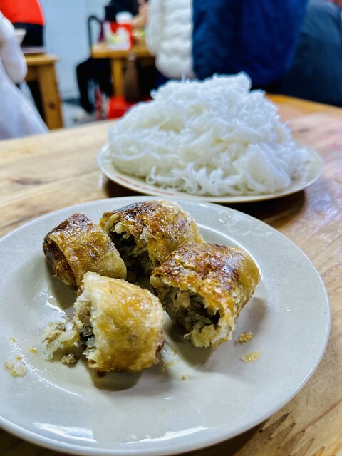 「揚げ春巻き」は具材がふわっと詰まり、パリパリの皮と食感が美味しい!「ブンチャー」や麺の量が多いのと味のトーンに変化なく、食べきれませんでした!ごちそうさまでした。