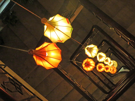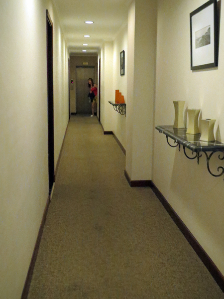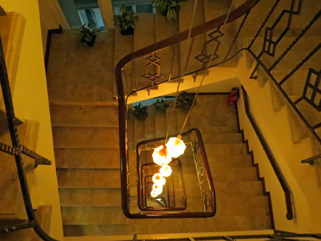 客室は最上階の7階、上から見下ろす螺旋階段はなかなか・・・