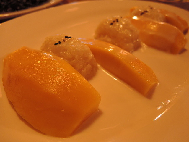 デザートはマンゴーともち米にココナッツミルクソースがかかったもの。タイにもあるらしい。