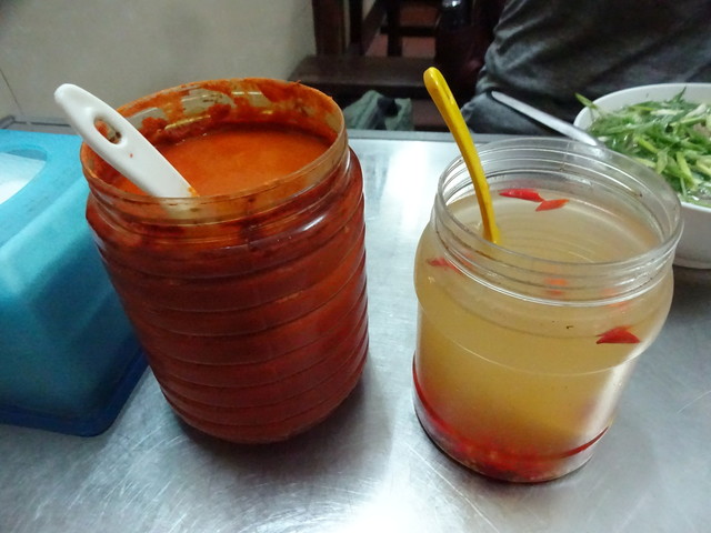 スープがおいしい。全部おいしい。テーブルに置いてある調味料を足して、