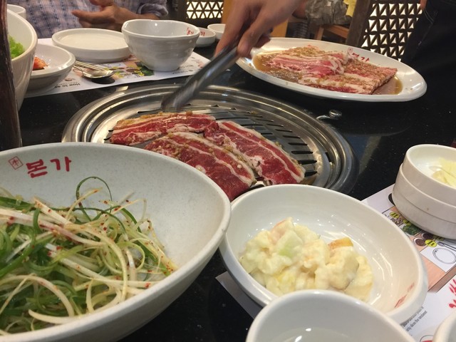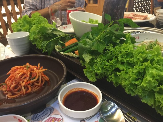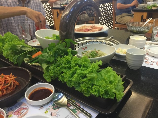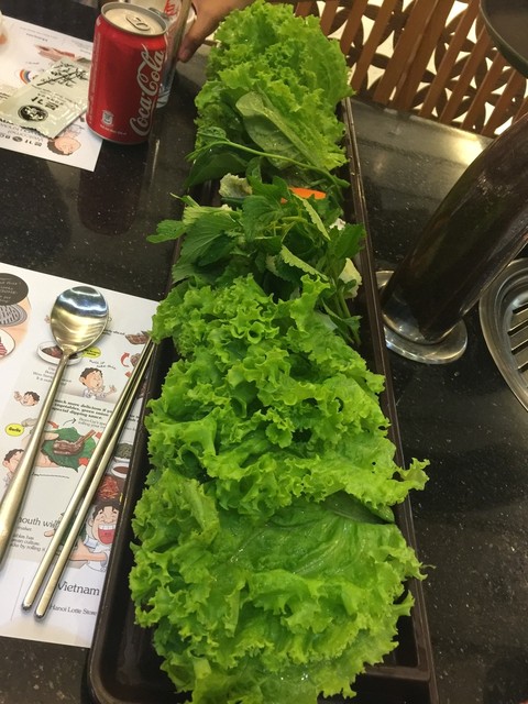 何かよくわからなかったけど、牛肉の焼肉(バラ肉)のセットみたいなもの〔1人当たり約200,000₫(約1,000円〕をまずチョイスして、様子を見ようとしたけど、スープやチジミや大量な野菜〔お替り自由みたいだ…〕も付いてきて、これだけで十分だったのだ。肉はバラ肉だったけど、美味しいし、これで1人当たり約1,500円ぐらいなら、とてもいい。一人当たり約300,000₫(約1500円〕で済むのだ。再訪ありかな。