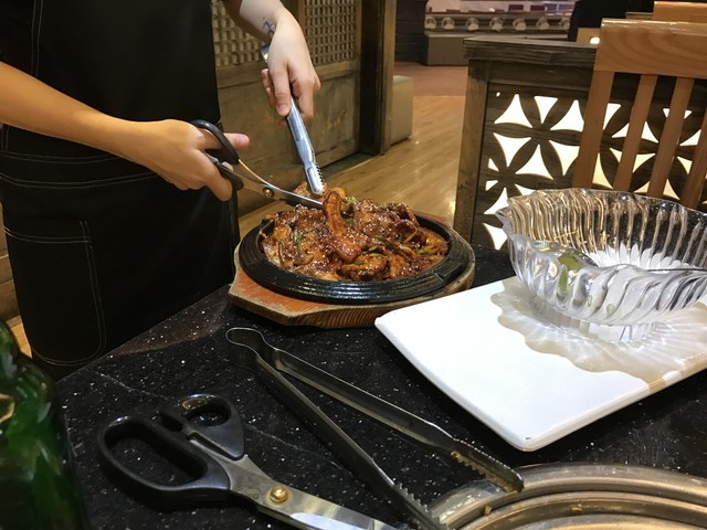 この レストラン街にあるThaiExpress Lotte Center以外他のレストランは空いているけど、ここ Bornga Lotte Centerは、地元の人たちで待ちの列ができるほど…飛び抜けて一番人気なのだ。
