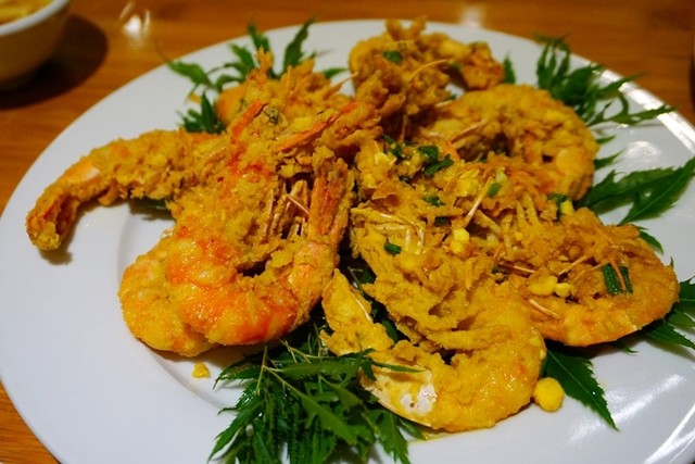 アヒルの玉子を衣に使ってあげた海老フライ...濃厚な味わい。