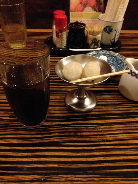 食後にコーヒーとデザートはが付き、デザートはライチでした。
