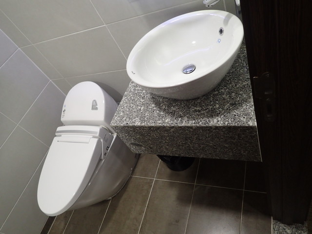 溝を走ったシャワーのお湯はトイレの床に落ちるんです