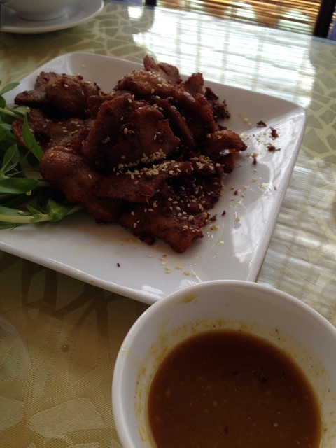 レストランは湖の近くにあるので、空気はとても涼しいです。おいしい食べ物。あなたは食べて、景色を見ることができます。それは素晴らしい場所で安いです。