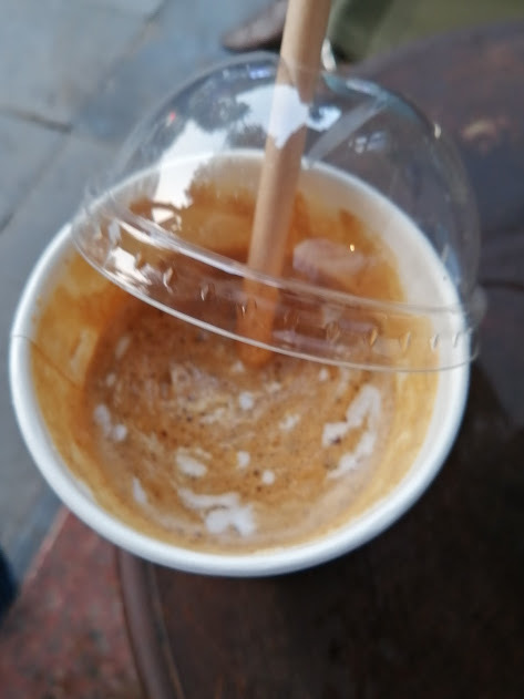 コーヒー豆をWで濃厚に入れたやつの底にはココナッツミルクが入っている。よーく混ぜて飲む。