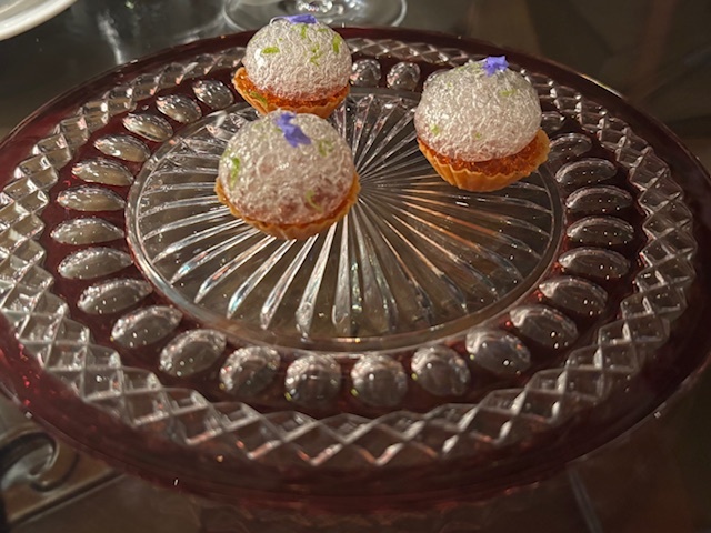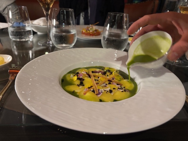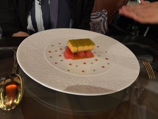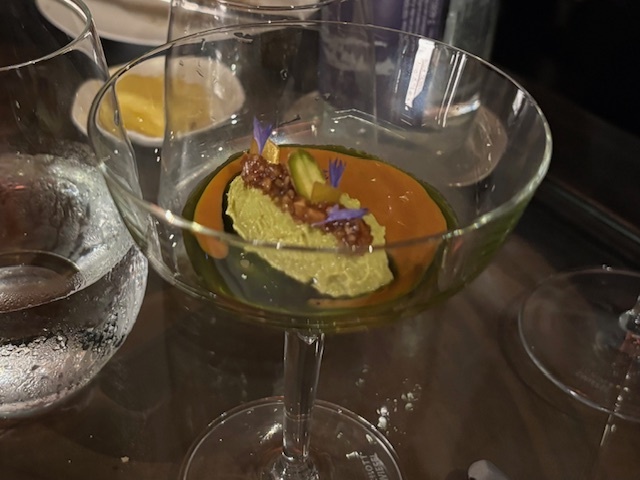 オマールは、ディルのブロスとマリネしたトマト。別皿ではピスタチオのソルベとビスク。特別ではないが悪くはなかった。