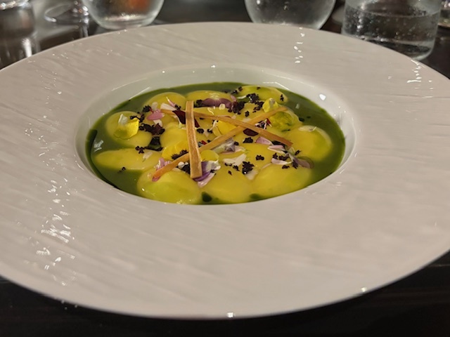 ニョッキはエアリーな食感が面白い。バジルのブロスがいいアクセントになっている。