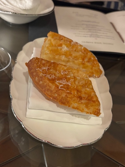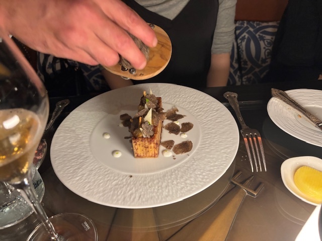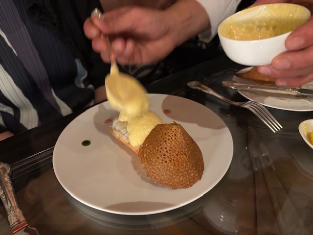 手長海老は温かいマヨネーズソース、スパゲッティのグラタンにはトリュフ。ポーションがあまり大きくないのはありがたい。
