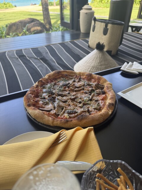 ソファーの席はそのまま寝れちゃう感じ。上からゆったりとウチワで扇がれて。マルゲリータは、パニーニのような生地で美味しい。パスタもちゃんと美味しい。それにしてもお洒落だ。