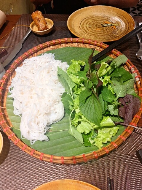 まずは前菜のハノイ風揚げ春巻きの盛り合わせと青マンゴーサラダからスタート。