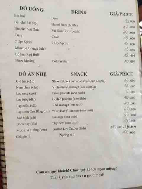北の代表的な美味しい料理を楽しむのに理想的なレストランです。いくつかのハノイ料理と小さなハノイビール。遠くまで行かずに北に行けば、それを感じることができます。