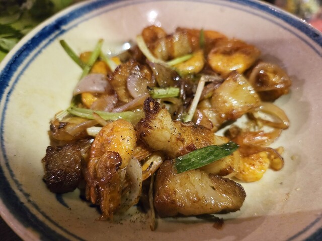 ハノイ市内にあるベトナム料理店「Tầm Vị」。ミシュラン2024★。世界一安いミシュラン星付き店。伝統的なベトナム料理を手軽な料金で楽しめる。ポーションがある程度ある料理が多いので、複数人で楽しみたい。ネット予約ができないので電話予約する必要あり。「Stir-fried Beef With Tonkin Jasmine Flower」約920円は、牛肉とトンキンジャスミンの花の炒め物で、未経験の食感が楽しめる名品、良。