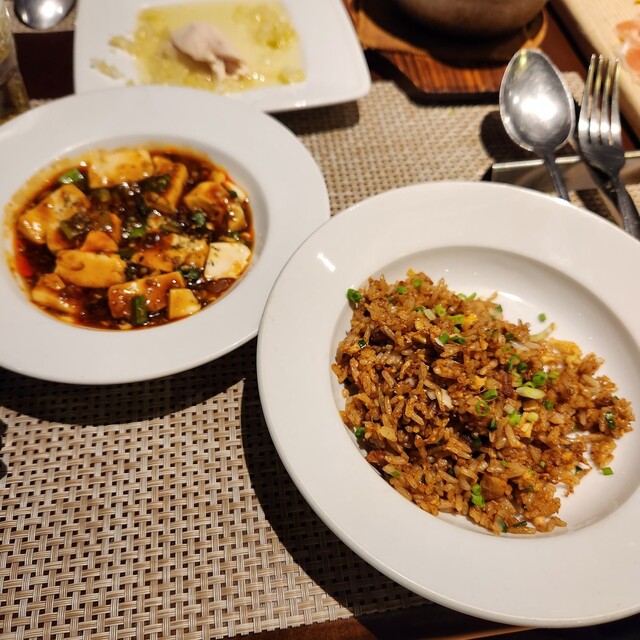 麻婆豆腐。程よい辛さで、チャーハンと食べるとぴったり。