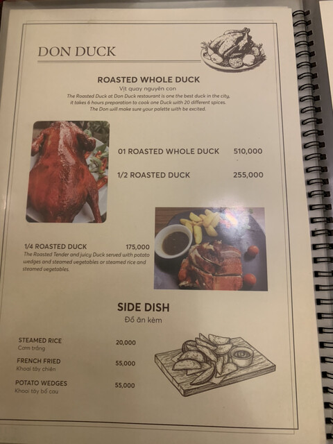 [旧市街のダック料理専門店、丸焼き丸ごと・1/2・1/4お値段お安いので迷いますが、食べ切ってお腹余裕あればフォーまで食べたいので1/4。10分弱で着膳、サイドの野菜があるので量あります、ダックこれはねっとり、皮も肉も旨い!金属鍋で炊かれた短米もまた旨い。にんにく効いたタレもいい!北京ダックはアホらしく感じるくらいです(๑˃̵ᴗ˂̵)サービスのスイカも上質!配膳の女性も感じいい。