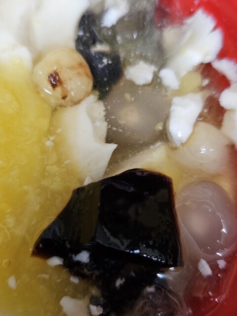 蓮の実、タピオカ(中にココナッツ)、黒いジェリーが。