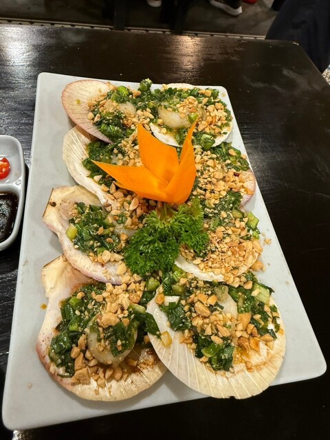 空芯菜、イチヂクのサラダ、海老、カニ、ホタテを注文。