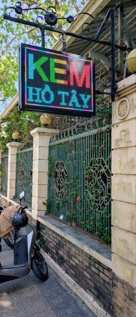 ベトナム社会主義共和国、首都ハノイ、タイ湖(西湖)、チャンクオック寺門前。二つ湖に挟まれた小島にある人気アイスクリーム店です。お寺参拝の前後に、アイスクリームを食べて涼しくなろう( ๑>ω•́ )ﻭ✧