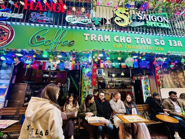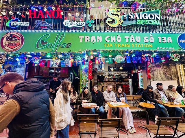 大半のお客様は観光客!列車が来る前にカフェに入り、ベストポジション席を確保するのが良いでしょう〜メニューは、コーヒーやビールにベトナム料理をカジュアルに楽しんだりとできます。