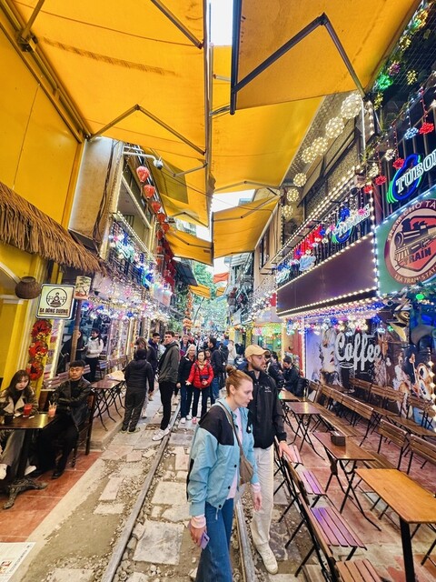 ハノイの列車通りは、首都ベトナムの活気に満ちた中心部に隠された宝物☆このスポットは、電車が通る狭い通りに、ショップ、カフェ、などが所狭しと線路から数インチの所にあり、絵本の中を切り取ったかのような美しい街並みが広がります。