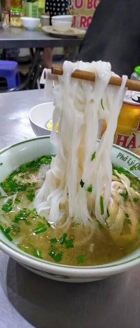 オーソドックスな鶏のフォーです。サッパリした鶏出汁スープに、柔らかめの米粉麺に、鶏肉とスライスされた玉ねぎ、ニラ等が乗っけてあります。途中からライムを搾り、青唐辛子を投入して味変。美味しく頂きました(๑´ڡ`๑)