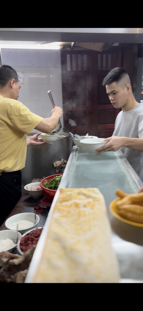 商品受け取って空いたテーブルへ.私はミックス60,000VND(日本円で約¥360)を注文。 味は優しくまさに朝ごはんに最適。
